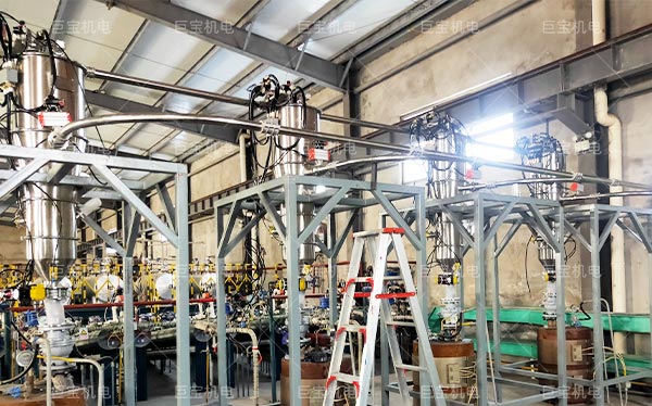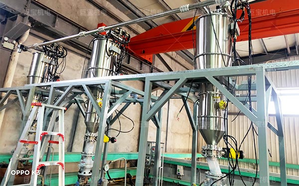 客戶現(xiàn)場(chǎng)采用間歇450一拖四上料機(jī)組合系統(tǒng),實(shí)現(xiàn)純堿的無塵自動(dòng)化精準(zhǔn)輸送。