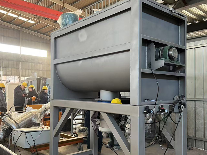 5、E臥式螺帶混合機主要用于膩子粉的生產(chǎn),也可作為入門級的保溫砂漿混合機。