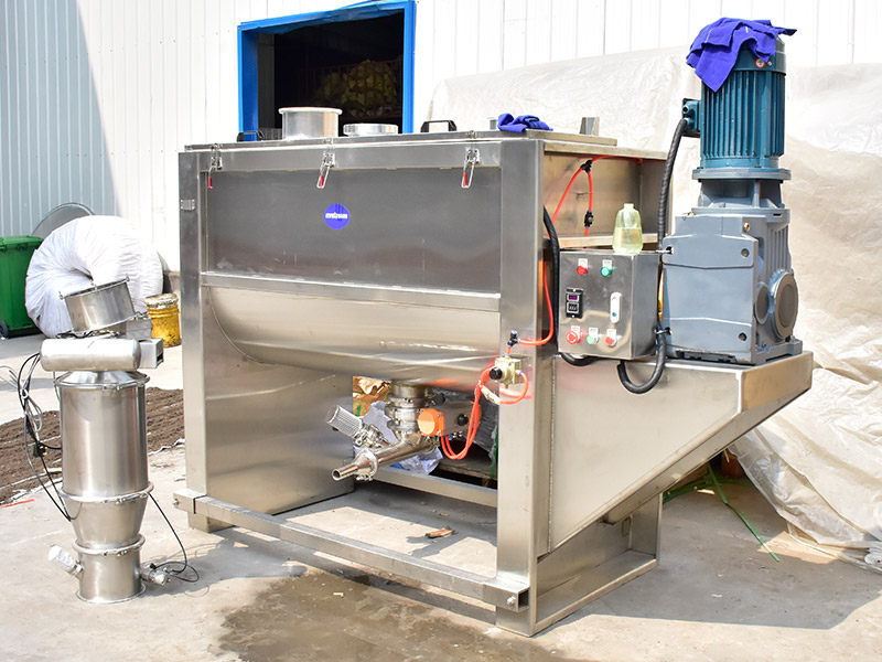 2、在可行性因數(shù)下,臥式螺帶混合機的混合效果不受顆粒的大小密度影響對有粘性物料亦有很好的混合效果。
