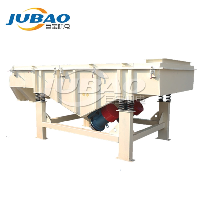 巨寶YS直線篩主要由篩箱、網(wǎng)架、篩網(wǎng)、振動電機(jī)、電機(jī)臺座、減振彈簧、支架組成。