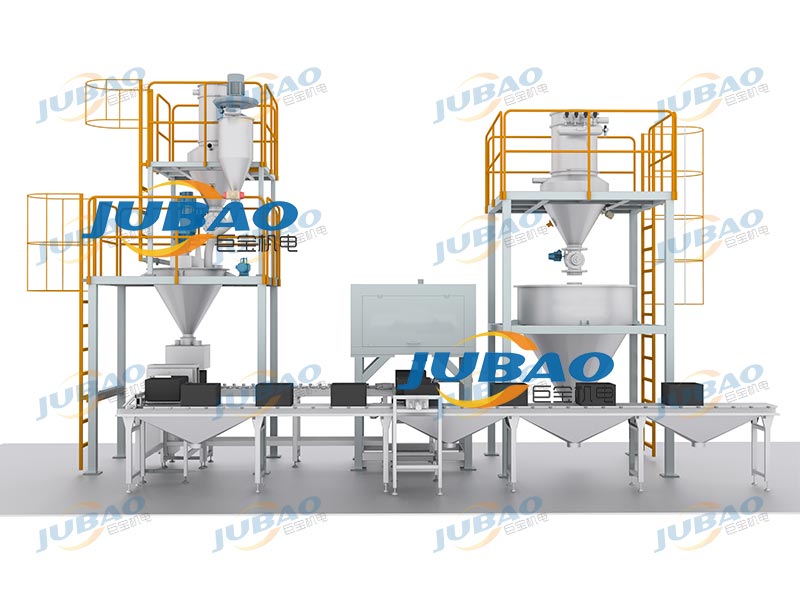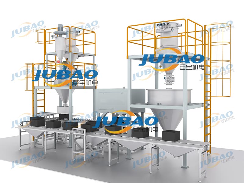 該自動化系統(tǒng)可以替代人工上料、下料,完成整個系統(tǒng)的無人化作業(yè);整條線體可以做到全封閉,粉料揚塵部位都有集塵設備,改善了現(xiàn)場的作業(yè)環(huán)境;改變了人工裝填料的不確定性,該設備自動稱量加料,精確控制加料量,提高了工藝一致性。