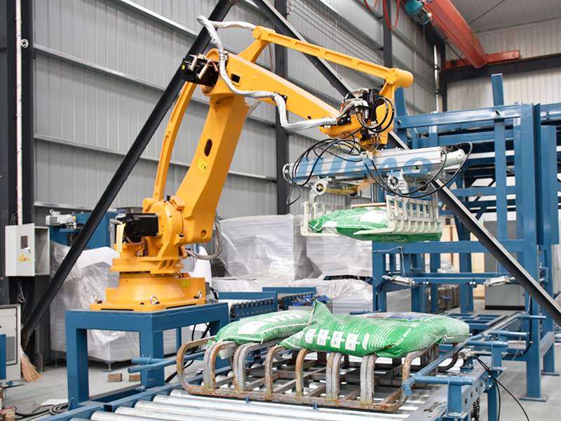 機(jī)械臂碼垛系統(tǒng)配合小袋全自動(dòng)包裝機(jī)的后續(xù)工序。它通常由機(jī)械臂、抓取裝置、控制系統(tǒng)等組成,能夠自動(dòng)將包裝好的小袋物品抓取并碼垛到指定的位置。它通過預(yù)設(shè)的程序或視覺識(shí)別系統(tǒng),精準(zhǔn)地抓取、搬運(yùn)、放置物料,實(shí)現(xiàn)自動(dòng)化碼垛作業(yè)。該系統(tǒng)能夠顯著提高生產(chǎn)效率,降低人力成本,并在惡劣或危險(xiǎn)的工作環(huán)境中穩(wěn)定作業(yè),保障人員安全。以其高效、精確、穩(wěn)定、靈活和智能化的特點(diǎn),在現(xiàn)代工業(yè)中發(fā)揮著重要作用。