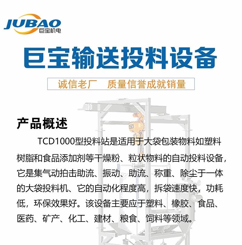 該設(shè)備適用范圍廣(所有噸包粉料,顆粒料,片狀料,結(jié)塊大物料均可使用),結(jié)構(gòu)簡(jiǎn)單、操作方便,更加環(huán)保。