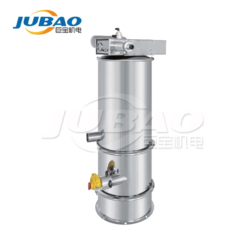 我公司生產(chǎn)的真空上料機是一種粉狀料、粒狀料、粉粒料混合料的真空輸送設(shè)備。由真空泵(無油、無水)、真空料斗、過濾器(有聚酯覆膜過濾器、PE過濾器、316L不銹鋼過濾器或鈦金屬過濾器多種選擇)、壓縮空氣反吹裝置、氣動放料門裝置、料位自動控制裝置、不銹鋼吸料咀、輸送軟管等組成,整套系統(tǒng)設(shè)計合理、制造精美。